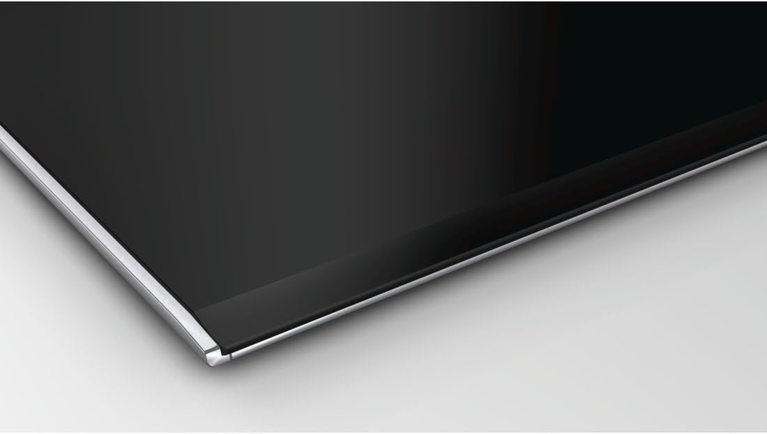 ComfortProfil: Bếp từ Bosch PXY875DC1E Serie 8 thiết kế thanh lịch, trang nhã với mặt cắt và dải kim loại ở bên cạnh.