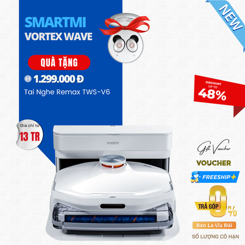 Robot hút bụi khô ướt Smartmi Vortex Wave Robot Vacuum Cleaner là phiên bản robot đầu tiên sở hữu khả năng hút và lau nhà khô ướt với các vết bẩn lỏng, dung dịch. Trang bị lực hút mạnh mẽ 4000Pa, tốc độ con lăn làm sạch 1600 lần/phút đi kèm tính năng tự động giặt giẻ không phụ thuộc vào dock sạc siêu tiện lợi, điều hướng và tránh vật cản bằng LDS 360°.