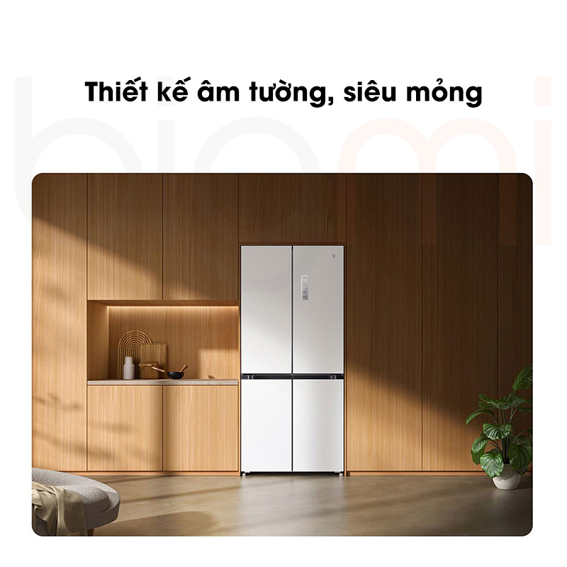 Tủ Lạnh Xiaomi Mijia 508L Pro BCD-508WTGBIA mang lại sự kết hợp hoàn hảo giữa thẩm mỹ và chức năng cho căn bếp hiện đại. Với kích thước chỉ 60cm, thiết kế siêu mỏng của tủ giúp tiết kiệm đến 36.7% diện tích so với các mẫu tương tự, nhờ vào việc giảm kích thước thân máy và độ dày cửa. Mặt trước của tủ rộng 85.2cm, giúp dễ dàng lắp đặt âm tường, tối ưu hóa không gian bếp của bạn.