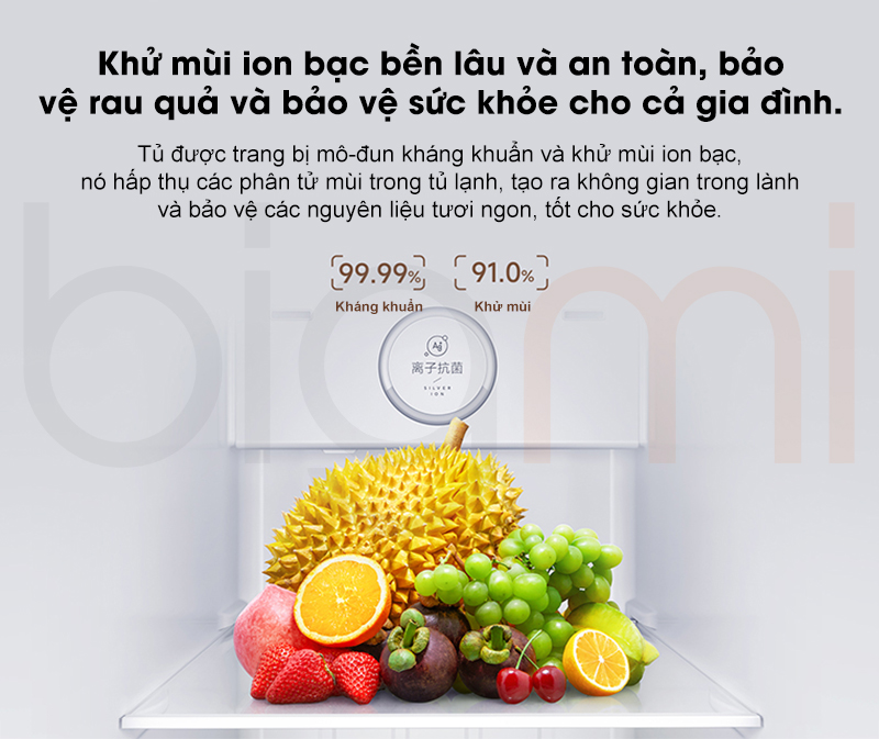 Kháng khuẩn 99.99% và khử mùi 91%